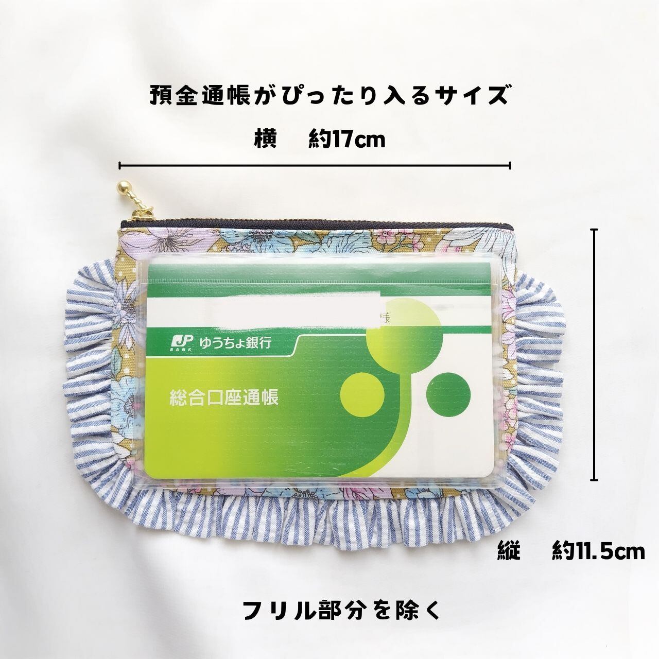 【16cmファスナーのぺたんこふりるポーチ】
