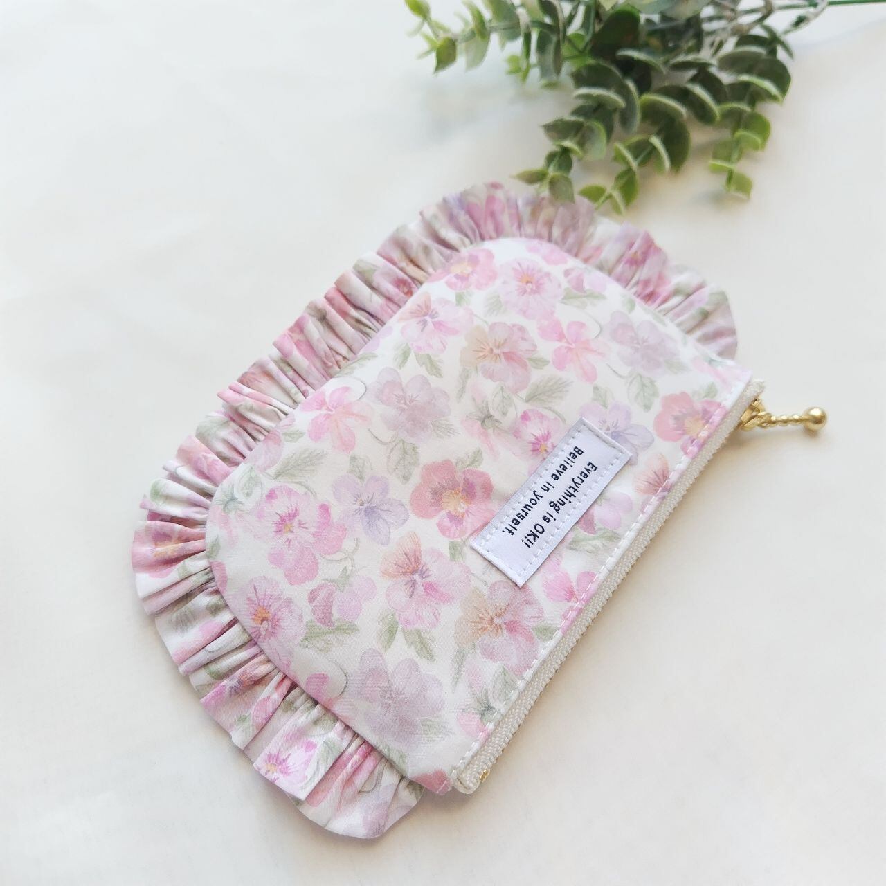 12cmファスナーのふりるポーチ リバティ/シンクオブミー/ソワレピンク