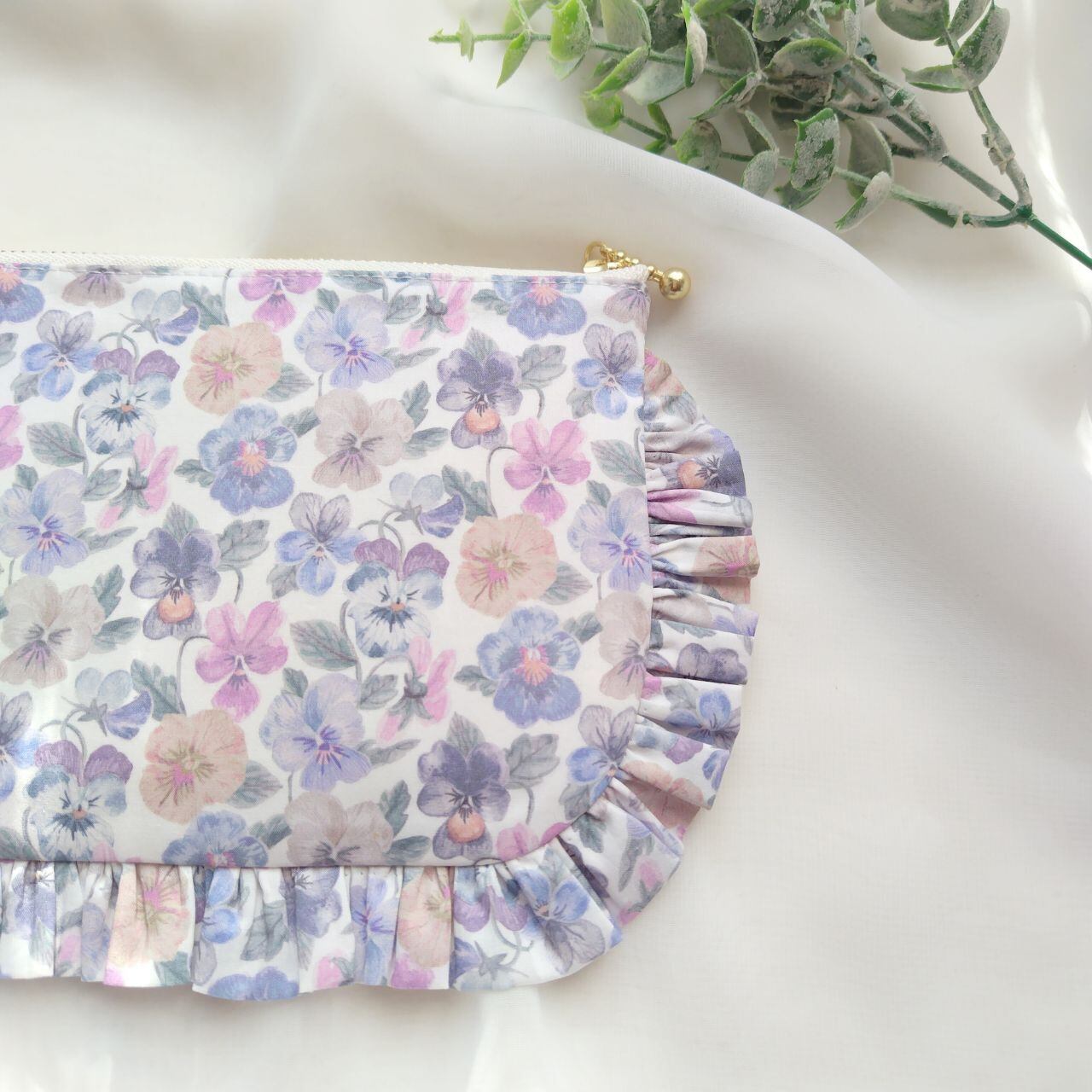 16cmファスナーのふりるポーチ リバティ/シンクオブミー/グレイッシュ